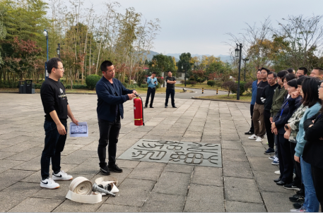 为确保景区在遇到突发火灾时,能在最短时间内充分发挥消防安全保障机制作用,快速、高效、有序地实施灭火工作,防止人员伤亡和最大限度地减轻财产损失,进一步普及消防安全知识,增强员工消防安全意识,结合消防宣传月各项活动,11月17日下午,兰亭景区在书法博物馆广场组织全体职工和安保人员进行了一次消防安全实战演练。