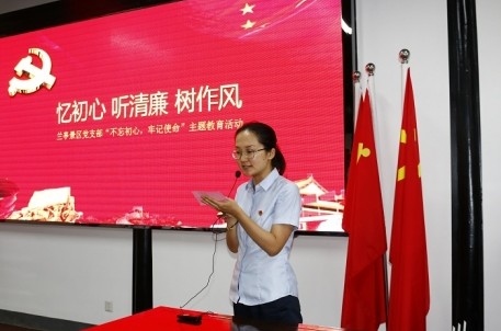 随后,党员代表冯烨、金叶、柯梦凯、姚小云等同志结合廉洁故事和工作实践,谈了自己的初心和对专项主题教育的理解和想法。她们表示,要坚守初心,牢记使命,在主题教育中锤炼忠诚干净担当的政治品格,严守纪律,勤思好学,树立"风清气正"的工作作风。