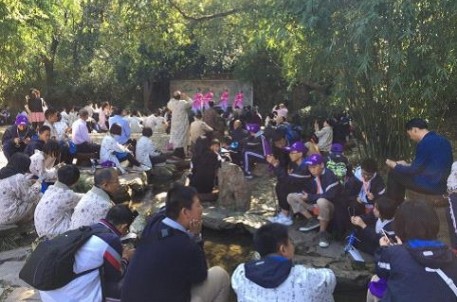 兰亭景区自2015年初整合升级原有的学生团活动,并根据不同年龄段的学生结合自身书法文化艺术的教学需求创新开发多个主题研学游活动,景区现有石刻拓碑、扇面描红、团扇作画、木刻版画等十余项单项研学体验活动,还有以探寻“之”旅、走进博物馆为主题的系列研学游活动。景区面向全国中小学生组织前来秋游的同学们通过集体旅行、集中食宿、集合培训的方式来体验与平常不同的校园学习,以此拓展视野、丰富知识、加深与自然和书法文化的亲近感。