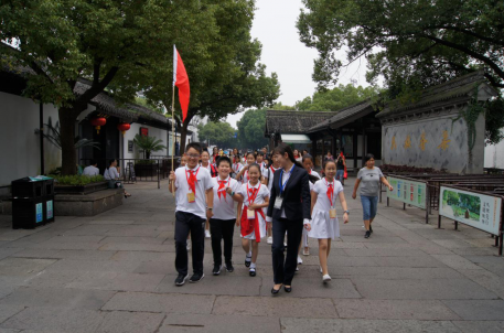 10月9日,中国少年先锋队越城区第十一次代表大会隆重召开。会后,三十多名少先队员代表和少先队工作者胸挂红领巾,手举少先队队旗来到鲁迅故里参加研学游活动。