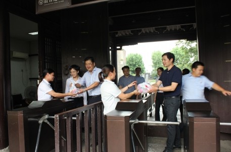 总经理胡华良、副总经理沈伟庆等一行冒着酷暑专程来到东湖景区看望慰问一线员工,给员工们带来一份份“清凉”的问候。