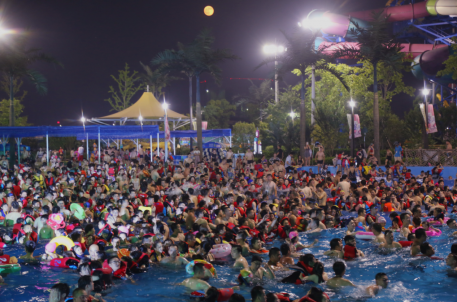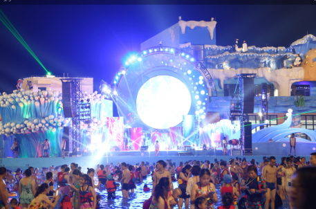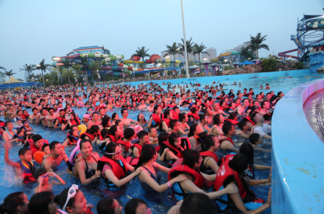 作为注重打造游客体验的水上乐园,我们为游客提供了全方位的体感互动。游客们,既可以体验深水区的碧波微漾,聆听海岸边浪花拍打着堤岸的声音。又可以在暗流涌动的深水区,徜徉浪花之中,体验随波浪席卷的翻腾雀跃。有着萧山胡彦斌之称的MC作为当晚主持人,全程将全场节奏带动,通过喊麦、拍打水花、合唱歌曲、小游戏、下水互动等环节,将整场演出掀起一个又一个小高潮。而有着丰富舞台经验的音乐魔术师美女DJ与资深视觉特效师VJ在幕后操作,引领并转换着现场听觉与视觉特效。演出中贯穿着身着闪亮服饰的异域风情的美少女们劲辣热舞、佤族特色的喷火演出、非洲特色舞蹈表演、身段高挑的资深美女舞者们的精彩演出。