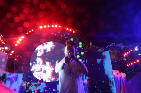 梦幻水世界园区内客容量最高的当属,由“蛟龙号”深海载人潜水器的设计生产单位702研究所设计生产的爱情风暴潮造浪池。造浪池中央深蓝色浪花造型的异形中心舞台,也就是本次电音派对的演出主要场地。爱情风暴潮造浪项目,可模拟8种不同状态的海浪形式,单次造浪时间长达15分钟。在造浪过程中,不仅需要训练有素的救生员时刻紧盯着游客们的状态,造浪设备操作人员的高度配合。更重要的是,要造浪时间要与舞台上的演职人员、音乐节奏、节目流程把控高度配合,为游客提供更加完善的游玩体验。