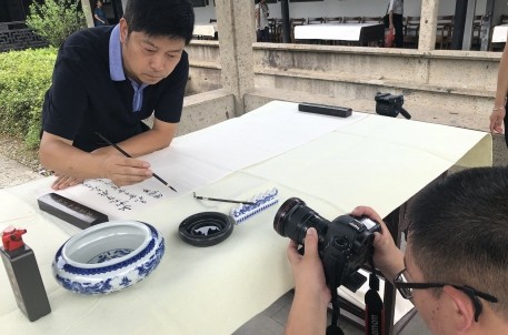 为了深度融入当地文化,栏目组以“兰亭书圣——王羲之”为切入点,在了解兰亭故事的基础上,分别对各点进行了细致的拍摄。除了在曲水流觞景点重现东晋永和九年王羲之等文人雅士饮酒赋诗的雅集场景外,还专门邀请了兰亭书法博物馆副馆长喻革良讲述作为兰亭守护人,近三十年来亲历的兰亭发展与变化。采访最后,喻主任感慨万分,在提及王羲之的启蒙老师卫夫人对王羲之的书法影响时,他说到:“虽已过去1600多年,但卫夫人当时对王羲之‘点像高山坠石,横若千里阵云,竖如万岁枯藤’的书法理念一直对我非常受用,影响很大”。