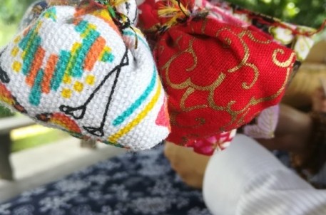 在绍兴,每于端午之前,家家姑娘剪取小块绸缎,精心绣制“香囊”,形状略如荷花、菱角、鸡心之类,十分精巧可爱;端午节当日,每家每户都有吃“五黄”的食俗。食五黄,佩戴香囊皆有避邪驱瘟之意,佩戴香囊更有襟头点缀之风。而这些传统端午习俗,在东湖景区就能得到体验。本次活动得到了广大游客的积极配合与响应。