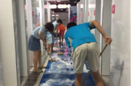 在门口,能看到我们的袁“妈妈”带着健硕的汉子们在对大门进行清理工作;往里走,我们的“杨总”带领高个的小伙子们在对玻璃进行细微的呵护;再往上走,我们的“威少”正带领着他的老铁们对我们男女更淋进行了改头换面......