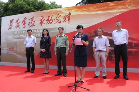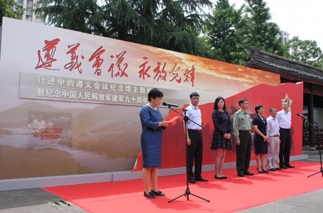 5月19日上午10点,“遵义会议 永放光辉——行进中的遵义会议纪念馆主题展览暨纪念建军90周年展览”走进绍兴,在周恩来纪念馆举行启动仪式。出席启动仪式的领导有中共绍兴市委宣传部副部长黄爱芬、中共遵义市委宣传部副部长周俊南、绍兴市军分区政治部主任吕社生、绍兴市党史研究室副主任金燕、遵义会议纪念馆馆长陈松、遵义历史文化研究会秘书长陆昌友、绍兴周恩来纪念馆馆长曾绍晖。参加启动仪式的还有市级机关党员干部代表,驻绍部队官兵代表。绍兴市旅游集团副总经理仲丽华主持仪式。
