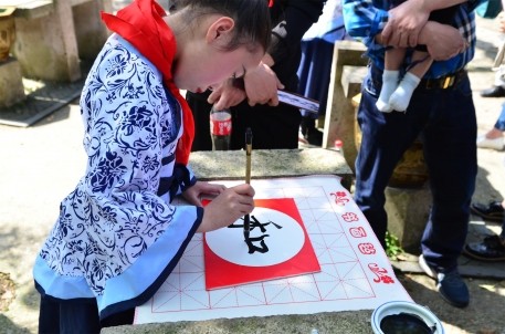 为积极贯彻落实李源潮副主席在全国少工委七届三次全会上关于“建好搞活大中小队和红领巾小社团”的讲话精神,近日,绍兴市柯桥区兰亭镇中心小学40位少先队员在兰亭景区内开展了主题为“听兰亭传奇 悟书法魅力 育惠和传人”的红领巾社团实践活动。