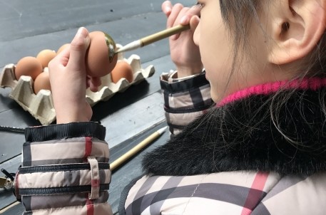 元旦,做个快乐的“捣蛋鬼”,一听这名儿就觉得很有意思。这不,景区工作人员一大早就忙乎开了:这边,在景区食堂内早早地煮上了香喷喷的神仙蛋、茶叶蛋。这些精心制作的“香蛋”将由兰亭的“形象大使”——穿着白鹅卡通服的工作人员,分时段派发给游客朋友们;那边,工作人员正在鹅池附近安放鹅蛋,游客们不仅可以赏鹅、观景,还可以细细寻觅,将这份包含兰亭祝福和印记的礼物带回家;再看流觞亭前,培训中心的工作人员准备了各色的丙烯颜料、画笔,和小朋友们一起上新年的第一堂课——绘彩蛋。