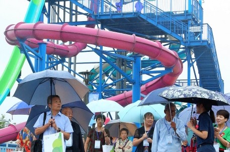 9月7日上午,26名曾经为旅游集团事业做出贡献的老领导、老前辈们在市旅投公司领导与工作人员的陪同下,兴致勃勃地参观了镜湖乐园梦幻水世界项目。