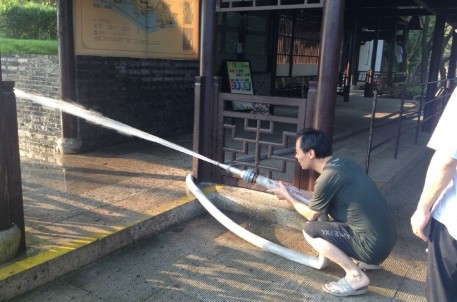 入伏以来,持续高温,晴热少雨,特别是近几天高温橙色预警天气给景区内的植物带来严重的影响,尤其是停车场内的香樟与陶社边的红枫林都是去年新栽植,还在养护期,部分已出现树枝焦头现象。 为保证景区内各种植物的健康生长,东湖景区及时启动抗旱预案,明确职责分工,坚持领导班子、党员干部带头进入抗旱第一线,集中各部室人力,抢时间、争进度,于7月25日早晨6点打响了抗旱浇水第一枪,分4组14人利用消防泵等设备浇水抗旱,使景区内各植物旱情有所缓解。 按抗旱预案工作安排,东湖抗旱工作将持续整个夏季。