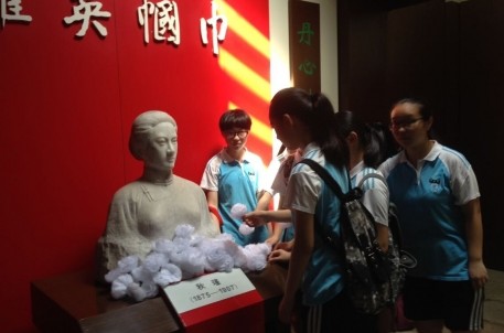 7月18日上午, 长城中学十余名学生来秋瑾故居开展暑期活动,同学们通过献小白花,听讲解等方式,学习秋烈士的生平事迹。