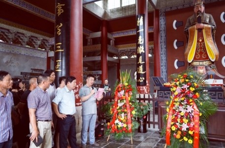 农历六月初六,是古代治水英雄,华夏人文始祖—大禹诞辰纪念日。 来自姒族守陵村村民和各地的大禹后裔代表齐聚大禹陵,隆重举行2016大禹诞辰民间祭祀活动。上午9时18分,在鞭炮声中,百余人着正装,抬着牛、羊、猪头,五谷杂粮,水果等祭品,从守陵村出发,手举姒族祭禹旗帜,浩浩荡荡前往大禹陵禹庙大殿祭祀。9 时50分,祭祀活动正式开始。全体肃立、鸣礼炮、敬献祭品、敬献花篮、绍兴市姒族研究会会长、大禹第143代孙姒茂利诵读祭文,后裔族人姒姓、夏姓、鲍姓、禹姓、娄姓代表先后向大禹像鞠躬、敬香,代表全体大禹后裔向祖先行礼,以祈求来年风调雨顺,五谷丰登。现年86岁的鲍姓代表激动地说:“每年六月初六,我们都要自发组织祭祀大禹活动,整个场面庄严隆重。大禹是我们的保护神,老百姓纪念他,一来表达我们对大禹的崇敬和缅怀之情,二来祈求来年风调雨顺。”