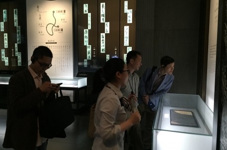 5月20日上午,玉环县副县长胡载彬带领县文广局相关工作人员一行6人到兰亭景区学习考察,胡县长此行主要目的是学习兰亭书法博物馆在建中的一些经验做法,特别是在陈列文本、设计和施工等方面的经验。一行6人先后参观了古迹区、兰亭书法博物馆、徐渭感映艺术大展和历届兰亭奖书法作品展,并向工作人员详细了解了博物馆从文本起草到最后呈现过程的每个细节。