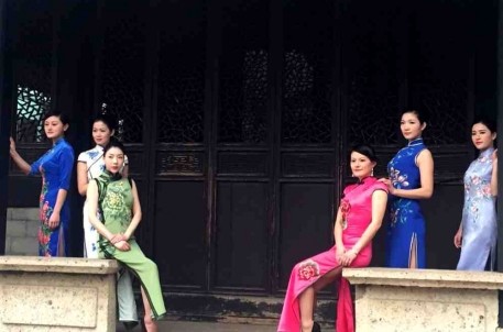 的确,旗袍有沉静、古典、性感的魅力;圣地有悠久、古朴、风雅的历史,两者的搭衬,是多么的相得益彰。