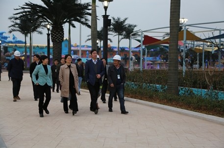 副省长实地踏看了镜湖旅游综合体一期水公园项目现场,视察开工14个月以来的建设成果,详细询问镜湖旅游综合体项目整体规划与投资建设情况。梁副省长饶有兴趣地听取了水公园项目设备的性能和参数介绍后,夸赞水公园游乐设备的高端、刺激,并对下一步镜湖旅游综合项目建设、运营提出了指导性意见,要求镜湖旅游综合体水公园项目倒排时间计划,为夏季正式开园做好充分准备。