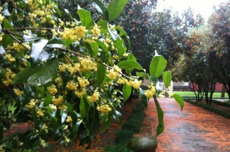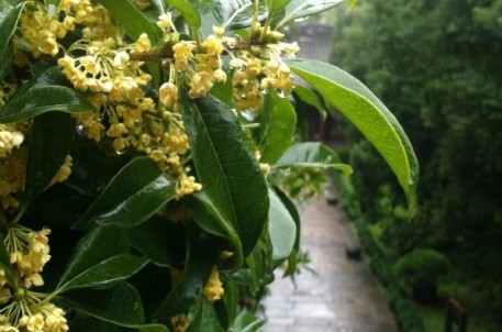 走进禹庙,一股桂花的清香扑鼻而来,沁人心脾。我闭上眼,深呼吸,色香味一齐袭来,一种如临仙境的意境。我痴痴地陶醉于此,久久不愿睁开眼睛。它的清香,随了雨,随了风,缥缈悠远……