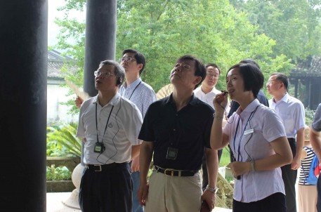 8月22日上午,北京金融街商会秘书长、金融街集团总经理鞠瑾一行在绍兴市人民政府副市长钟洪江、秘书长丁如兴、副秘书长谢胜的陪同下,到兰亭景区参观考察。