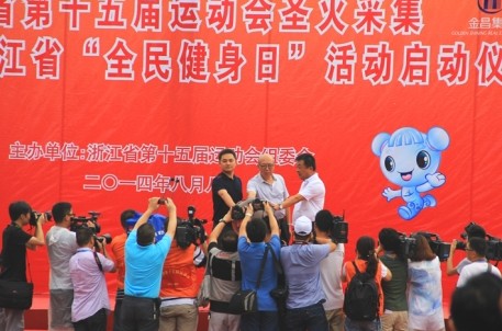 巍巍大禹像矗立会稽山顶,注视着绍兴城建的千年历程。今天,它将见证第十五届省运会的火种采集。稽山下、鉴水畔,浙江省第十五届运动会圣火采集仪式暨2014年浙江省“全民健身日”活动启动仪庄严肃穆。