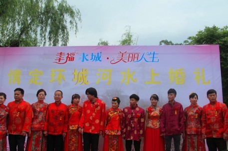 5月25日, 8对新人在环城河上举行“幸福水城,美丽人生,情定环城河”水上集体婚礼。本次活动由绍兴市水城办、绍兴晚报主办,绍兴市水城旅游股份有限公司承办。