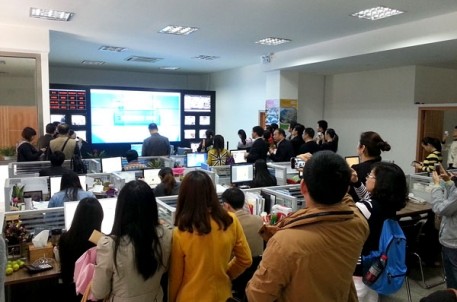 4月22日上午,参加完我省旅游景区、旅游度假区营销部门经理岗位职务培训班的全省各地A级旅游景区、国家级(省级)旅游度假区、博物馆等旅游单位的营销经理一行50多人来到绍兴市旅游集团信息中心,实地参观了我集团智慧旅游建设工作,工作人员通过LCD大屏,就我集团在景区智慧管理、智慧营销、智慧服务等方面向来宾逐一进行了系统演示,嘉宾们在听完报告后,与工作人员进行了交流,对我集团在智慧旅游方面的工作表示了赞许和浓厚的兴趣。之后,来宾们还实地考察了鲁迅故里·沈园景区。(茹玉骏)