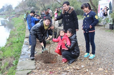 虽适逢春雨绵绵,但各位来宾热情高涨且乐在其中。在工作人员的配合下将小树苗一棵棵悉心种下,并为小树苗浇灌春天的甘泉,希望它们茁壮成长!经过大家齐心协力,30多棵小树苗种植完毕,品种还挺丰富有:龙柳、桂花、梅花、玉兰,为兰亭江畔及休闲园增添了一道春意盎然的风景。