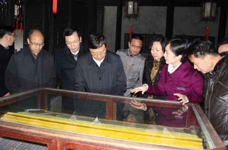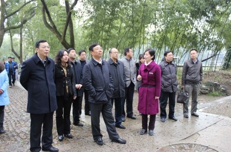 3月6日下午,桂林市委书记、市人大常委会主任赵乐秦一行13人,在绍兴市委副书记尹永杰,绍兴市委常委、副市长姚远的陪同下,来景区参观指导。