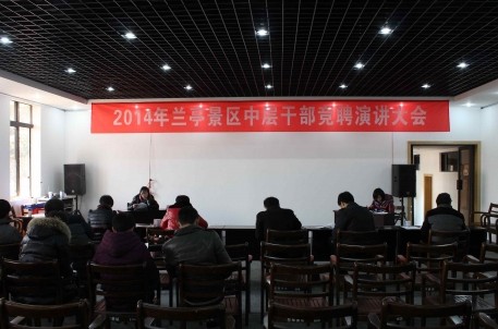 为了加强队伍建设,进一步规范与提升内部管理,2014年1月,兰亭景区组织实施了中层干部竞聘上岗工作,面向全体职工推出四个部室共10个中层干部岗位,公开选拔优秀干部。竞聘方案出台后,共有13名符合条件的员工积极报名参加。1月23日,竞聘演讲大会在兰亭瓷砚馆大讲堂举行,13名通过资格审查的竞聘者上台进行了竞聘演讲,由集团公司人力资源部经理甘全红、景区领导班子和景区群众代表组成的考核评分小组根据竞聘者的综合表现进行了打分。最后,景区领导班子根据竞聘排名情况,经过讨论,决定择优录用王姚威等10人担任办公室、游客中心(接待部)、产业部、营销策划部四个部室的中层,聘期1年。
