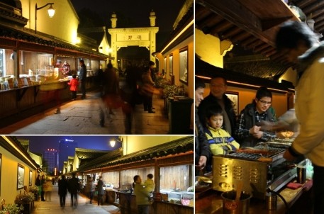 新开辟的鲁迅故里仁里街区绍兴特色食品街,由18间与景区环境相协调的古色古色仿古小木屋组成,他们互相连接,每家店铺错位经营、互不重复,全天开放经营。近百种风味小吃让游客和市民朋友在欣赏美景的同时也大饱了口福。为确保周围文保区域安全,管理方规定,小吃制作现场不准使用明火,街区晚间灯光全部采用节能环保的LED灯。