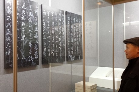12月27日上午,由鲁迅故里·沈园景区主办的“醉歌·陆游书法展”在原绍兴博物馆延安路馆一楼展厅展出。展品以故宫博物院、国家图书馆、美国波士顿美术馆等所藏陆游书札、尺牍、榜书、碑刻、摩崖题字拓本等书法墨迹为蓝本,向世人展示了陆游诗家之外少为人知的书家真容。今年是爱国诗人陆游诞辰888周年,陆游的书法造诣颇深,擅楷、行、草,行草之间最见风采。南宋著名理学大师朱熹评价他的书法“当今推为第一流”。图为陆游第二十六世子孙,现年64岁的陆兆千老人正在参观展览。