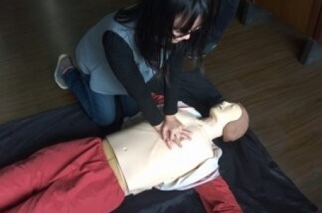 培训中,专业培训师为志愿者现场演示并讲解了遭遇突发事故时的现场急救要领。比如:如何在抢救的黄金时段给生命垂危的人做心肺复苏,排除气道异物梗阻等。同时,还介绍了其他的自救互救知识。比如:头、眼、臂、腿等不同部位的包扎方法及大腿骨折的固定和搬运等。