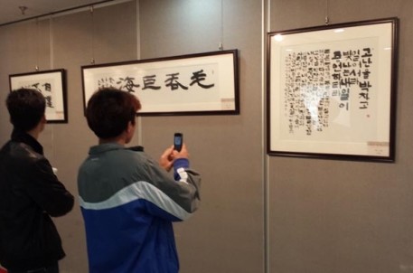 由兰亭书会和韩国书学会共同主办的《群贤毕至——中韩书法名家十人展》日前在鲁迅纪念馆临展厅展出,展出作品由兰亭书会和韩国书学会10位书法名家创作,展览不仅带来了韩国独特而优秀的文化精神,还使中韩两种既有渊源而又有差异的传统文化得到交流碰撞。