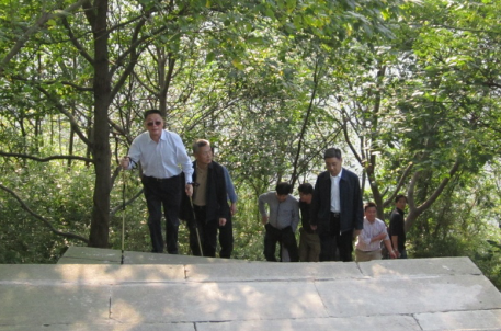 一行人兴致勃勃地登上了绿树环绕的石帆山。沿途,钱书记引经据典地列举了古时登临会稽山的文人雅士,给石帆山登山道提出了一些修整意见,希望有关部门在山道两侧增加一些古人吟咏会稽山的诗词碑刻,使游客在享受登山乐趣的同时了解到会稽山悠久而厚重的历史文化,对会稽山大禹陵和绍兴留下更加深刻的印象,进一步营造绍兴良好的旅游形象。登上山顶后,他仔细观阅了大禹铜像碑记,对铜像的建造过程颇感兴趣,并就铜像的保护提出了意见。
