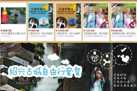 近期游客中心电商运营团队对绍兴古城天猫店网站形象进行全新装修,采用新的大图轮换模板,通过简洁大方的页面结构,良好地展示了旅游产品和古城形象,同时也为配合中秋国庆的网络销售做了一个铺垫。(茹玉骏)
