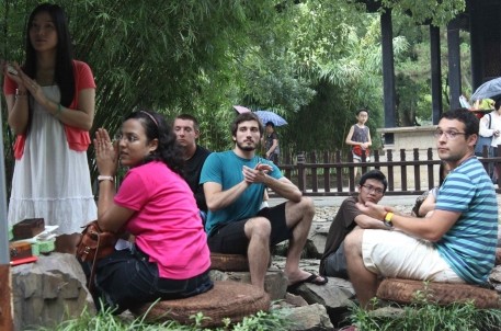 历时三天的美国留学生兰亭书法短训班于今天下午在兰亭景区曲水流觞景点轻松自如的氛围里落下帷幕,这也是美国大学生连续第十个年头来兰亭景区练习中国书法,体验中国文化了。