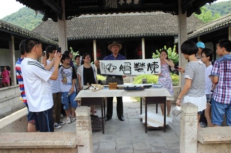 7月3日下午,苏州青剑湖小学的100多名学生来到书法圣地兰亭参观游览,体验书法。学校还特别邀请了世界华人联合会诗书画研究院常务副院长、江苏分院院长、北京巨星艺术学院客座教授、常州作家协会理事陆林深为学生们现场教学。陆教授在王右军祠现场讲课,教同学们如何识别不同的书体以及书写中的握笔、运笔方法和技巧等,同学们听得津津有味,经过的游客也被陆教授生动的讲课吸引,纷纷驻足认真倾听。最后,陆教授挥毫写下“炼艺冶心”四个大字,告诫同学们要勤练书法,提高书艺,修养心性,陶冶情操。 诸无名