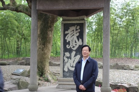 2013年4月25日下午,中国人民解放军国防大学校长王喜斌一行13人参观兰亭景区。王喜斌军人出身,热爱祖国传统文化,特别钟爱书画艺术,写字画画是他最大的业余爱好。在参观过程中,王校长对兰亭清幽的自然环境、浓厚的人文环境非常喜爱,在认真听取讲解之余,还兴致勃勃地参加了仿古曲水流觞活动,最后在右军祠墨华亭题字留念。