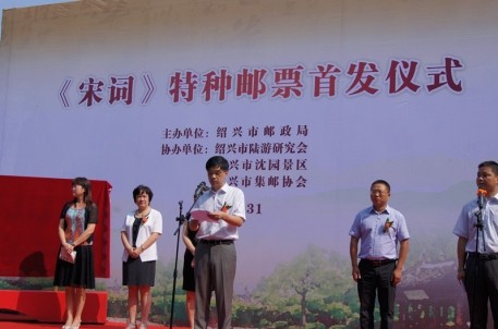 8月31日上午9点,《宋词》特种邮票首发式在沈园南门广场举行。本次首发活动由绍兴市邮政局主办,市陆游研究会、沈园景区和集邮协会协办,邀请了相关部门领导和省市集邮爱好者共襄盛会。
