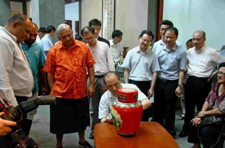 6月9日下午,斐济总理姆拜尼马拉马及夫人一行,在副市长徐明光陪同下到绍兴黄酒城参观考察。姆拜尼马拉马总理参观了酒艺厅、三维影视厅,观看了花雕现场制作、酒道表演,还兴致勃勃地品尝了绍兴黄酒。据悉,此次来访的有斐济驻华大使艾萨拉·泰莱尼,斐济驻华使馆参赞莱维尼·乃乌米等。