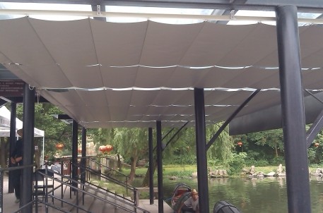 近日,东湖景区乌篷船码头设施又有提升。景区在船码头玻璃亭下安装了滑动窗帘,旨在为等待坐船的游客抵挡酷暑,人性化的举措受到了在场游客的欢迎和赞赏。
