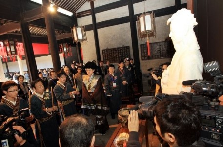 中国书法家协会分党组书记、驻会副主席赵长青,中国书法家协会顾问、全国政协人口资源环境委员会副主席邵秉仁,中国残联党组副书记、副理事长王乃坤,原海军装备部副部长、少将肖殿川,中国文联国内联络部主任罗成琰,中国书法家协会分党组副书记、秘书长陈洪武,省人大常委会副主任程渭山,副省长郑继伟,省政协副主席盛昌黎,省委宣传部副部长、省文联党组书记、副主席吴天行,省文联党组成员、书记处书记高克明,省文化厅副厅长、省文物局局长、省书协主席鲍贤伦,省书法家协会副主席兼秘书长赵雁君,市领导张金如、黄秋芳、顾秋麟、王文序、黄秋生、冯建荣、陈伯怀,市老领导袁长寿及来自海内外书法界、文化界、旅游界、新闻界等各界人士约300人出席开幕仪式。省委书记、省人大常委会主任赵洪祝发来贺信。