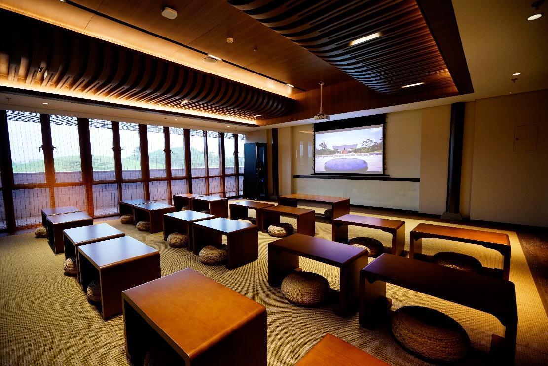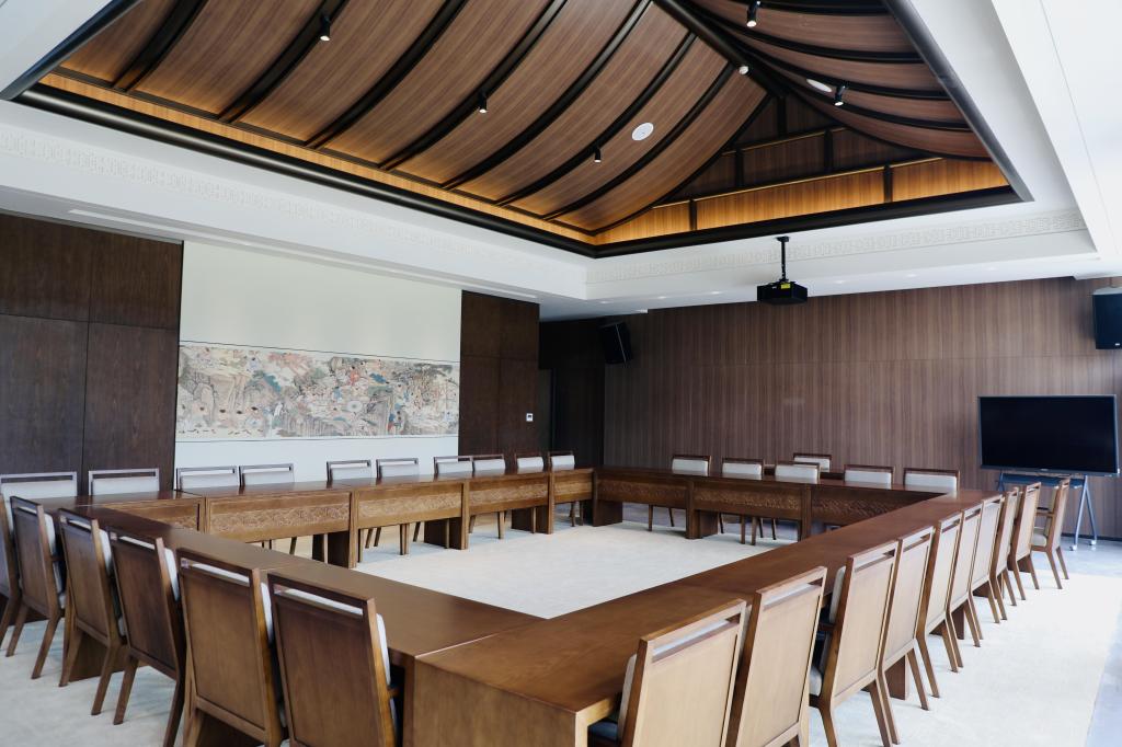 大禹研学营地依托于大禹研究院而设,依山傍水,传统文化集聚一体。营地建筑面积13585平米,整体为中式园林式建筑群,包含教学区、餐饮区、住宿区、学术研讨区、会议报告区及800平米中央草坪。其中不同规格的研学教室8间,学术会议厅4间,452座带 led大屏和舞台的阶梯式报告厅1间,学生食堂配套餐位 300 余个,教师餐厅3间,不同房型客房64间(六人间36间、双床房16间、大床房12间),共272个床位。周边停车场共计近500个标准车位(含充电桩20个)及大巴车专位,全面满足研学活动的停车需求。营地配套禹陵核心区、大禹纪念馆、百鸟乐园、碑园等景点,并享有景区全部旅游资源、硬件设备和配套服务,单日最大接待量可达800人。