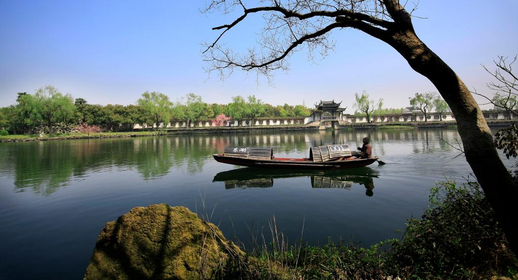 东湖因山而生,因石而奇,因水而美。湖中崖壁千寻,有的对峙如门,有的倒悬若堕,有的深曲如洞,水色深黛、清凉幽静,巧夺天工之奇观,使人陶醉。配以一叶叶乌篷小船,使“桥如虹,水如空,一叶飘然烟雨中”的如诗意境得以真实再现,身处东湖犹在画中。每逢春季桃花盛开,灿若朝霞,落时缤纷,诗情画意,犹如陶渊明笔下的桃花源。