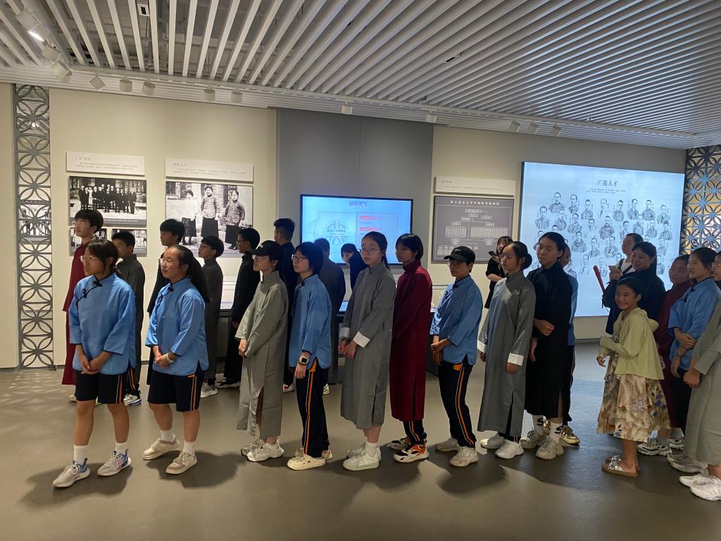 1.学生着民国时期服装,讲解员带队参观孑民图书馆负一楼“学界泰斗,人士楷模”蔡元培生平事迹展。