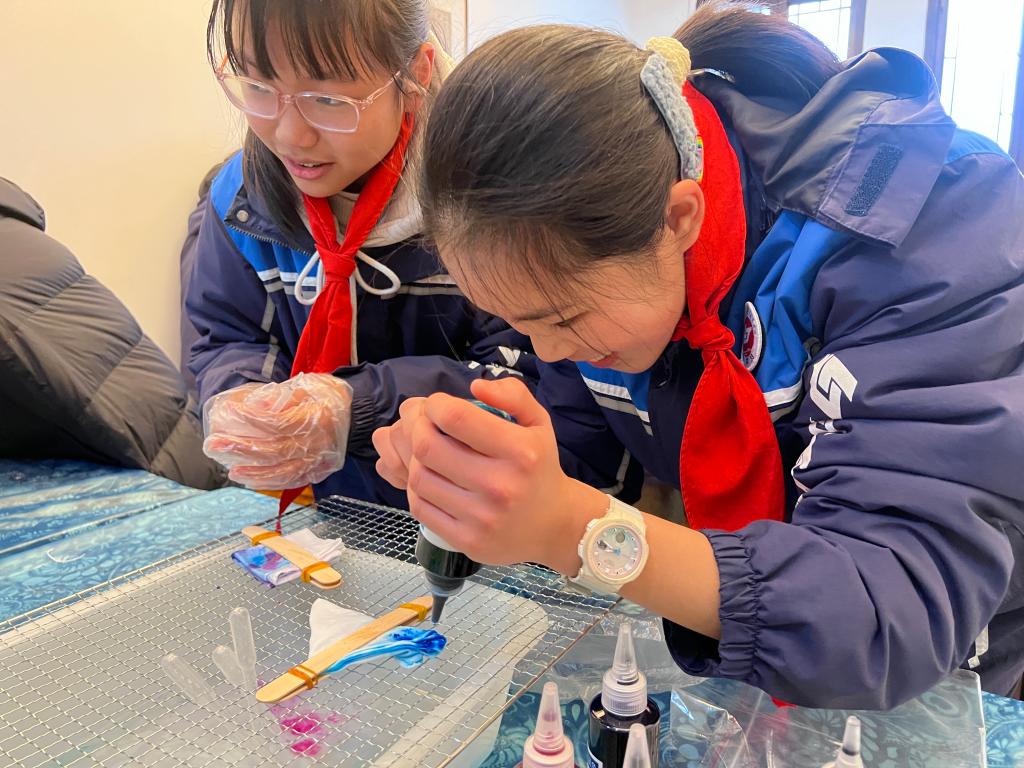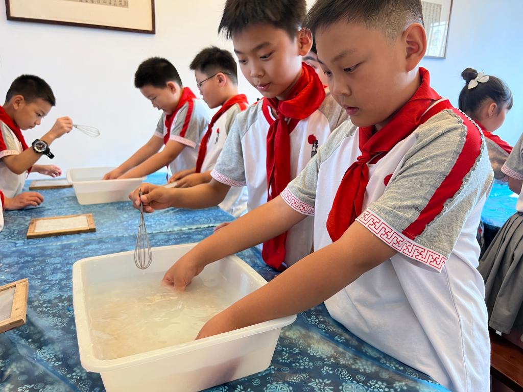 3.选择非遗剪纸、拓印/造纸/曲艺/书法/石桥营造中的一项或多项进行互动体验,使学生们能够近距离接触并体验民族艺术文化,从而深刻感受非物质文化遗产的艺术魅力