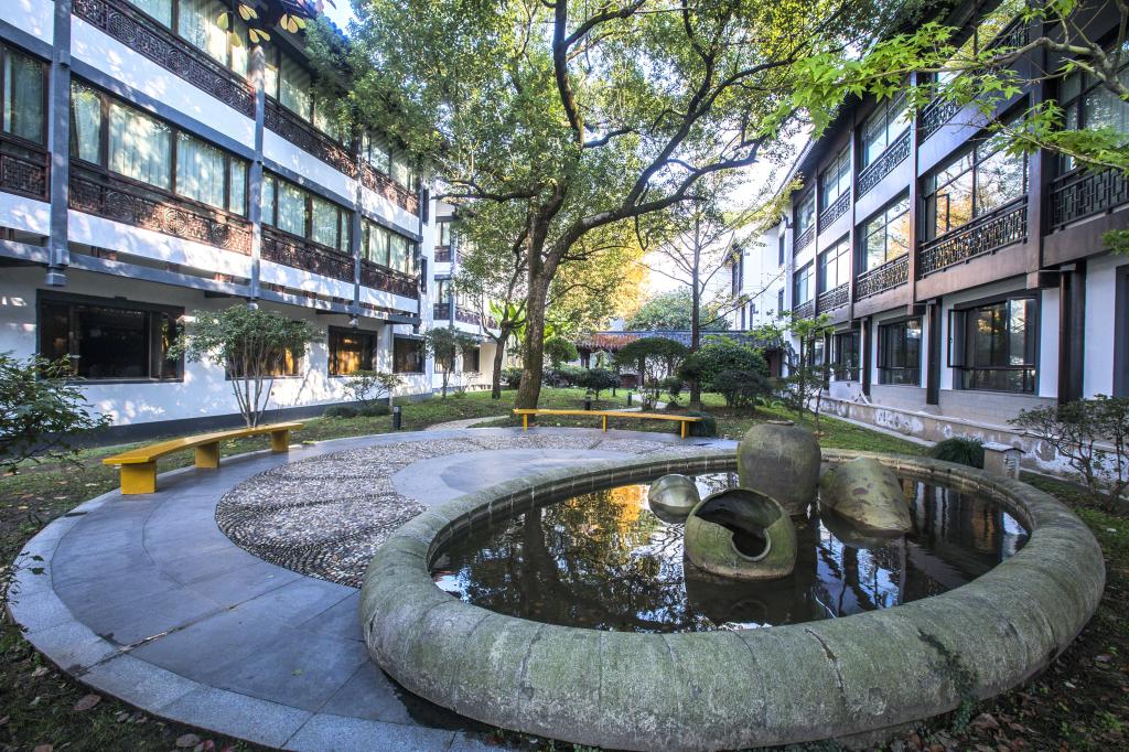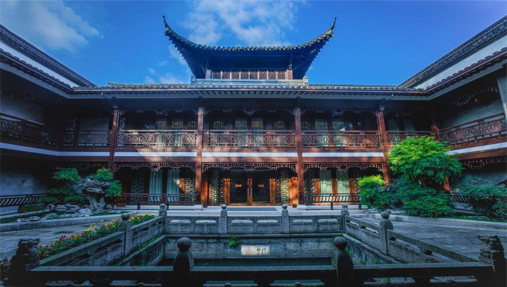 绍兴饭店是一家中式园林度假酒店,青砖白墙、古韵回廊、亭台楼阁、小桥流水、花木扶疏,入眼皆景。