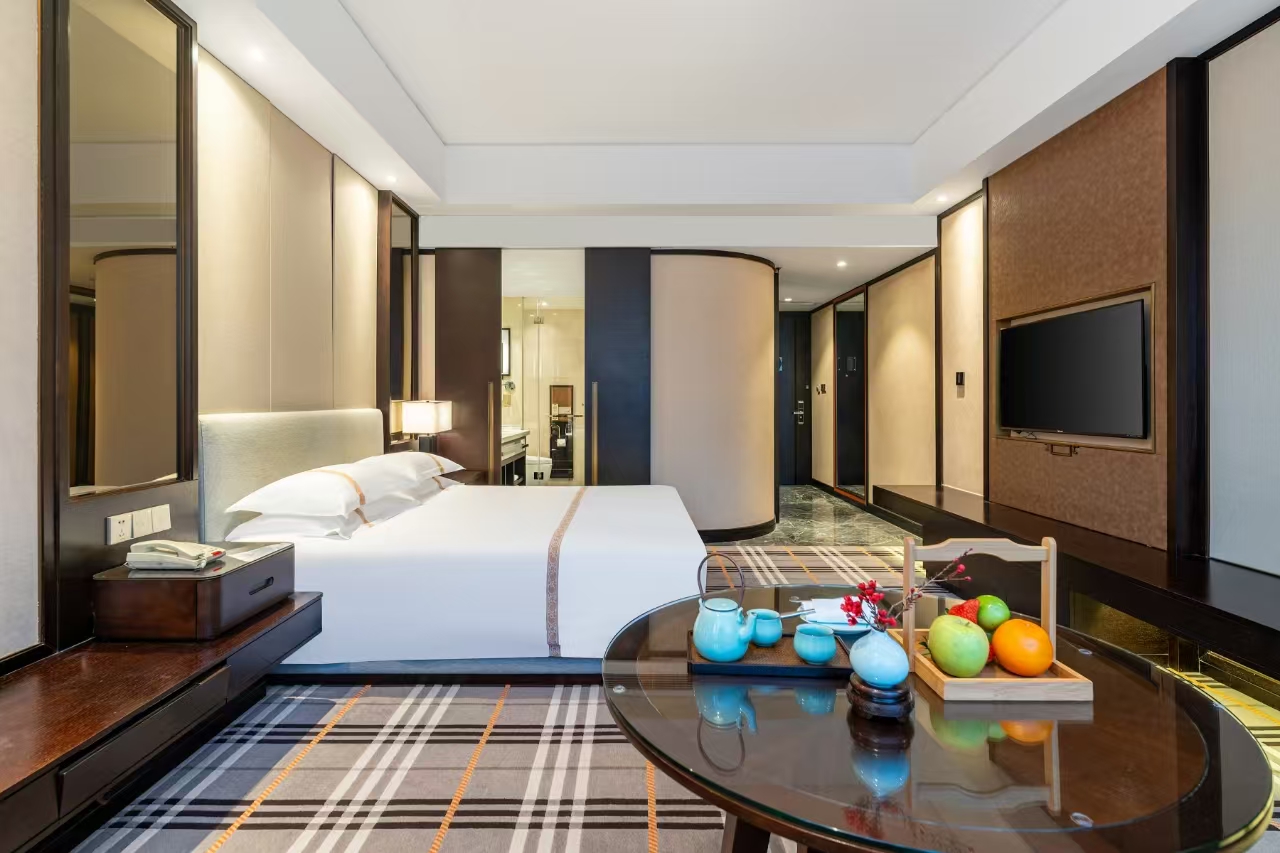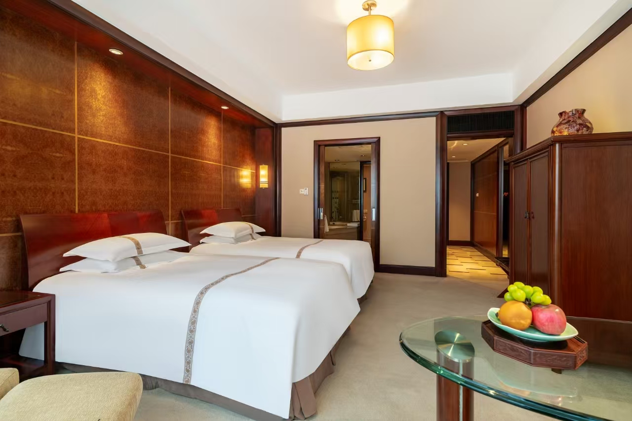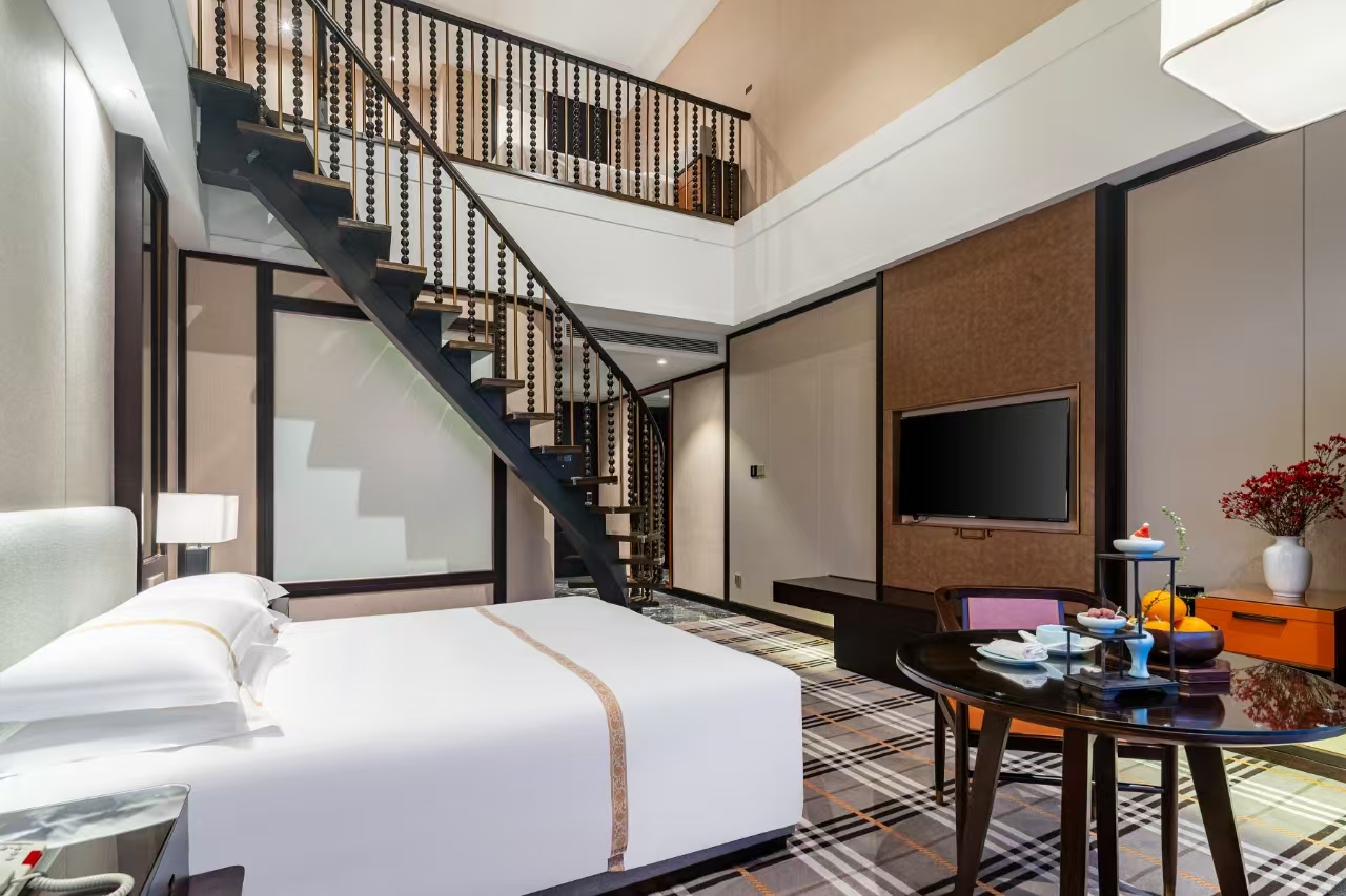 绍兴饭店拥有多种房型,府山悦家庭套房、府山悦精致大床房、高级大床房、豪华商务双床房、豪华商务套房、豪华雅致大床房、家庭复式房、跃层尊享套房、尊享大床房等。