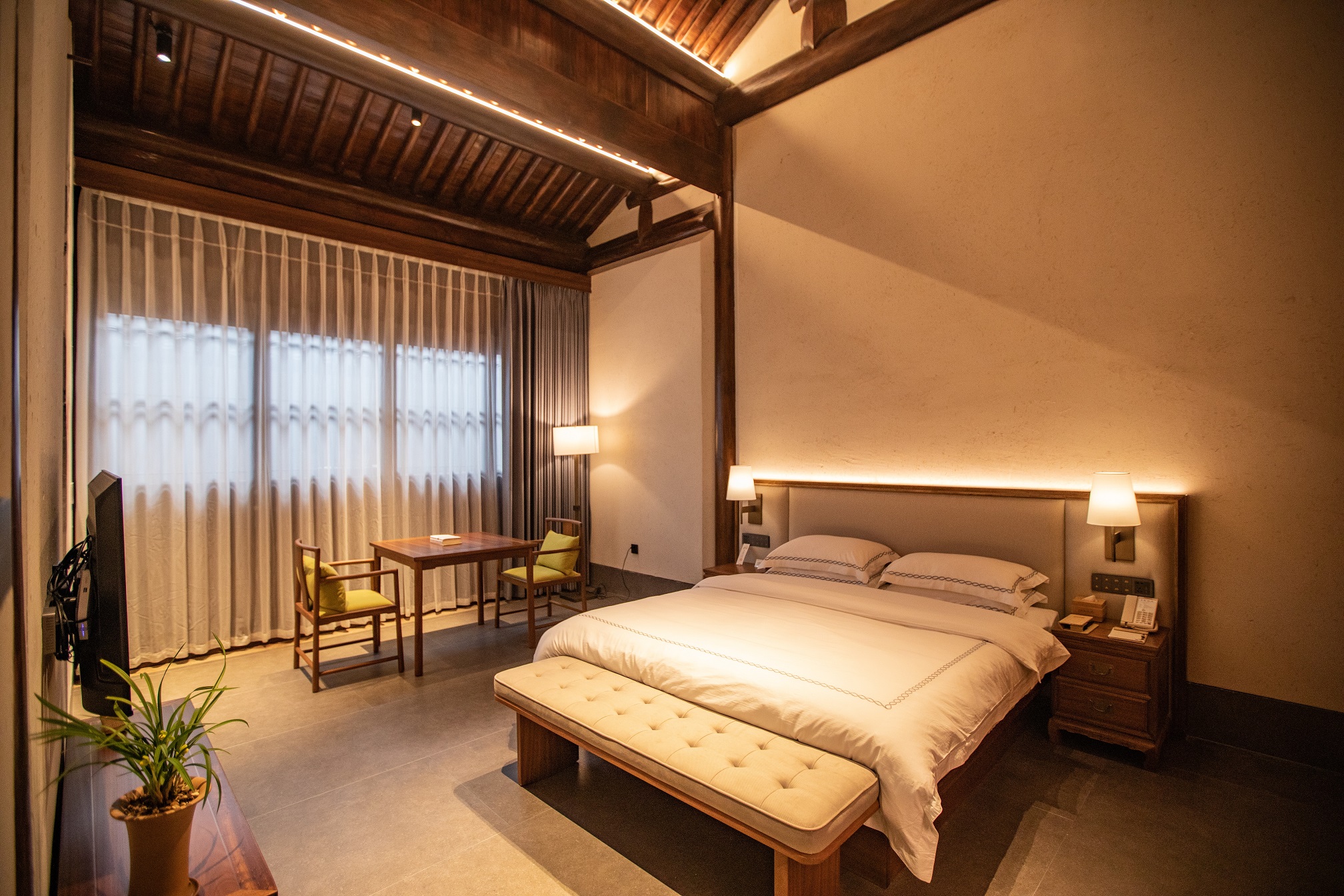 青藤别苑由绍兴特色台门建筑改建而成,客房古朴清雅,空间线条干练,以低调设计表达空间的本质。