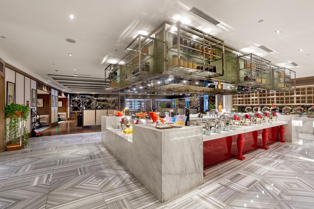 国际大酒店位于府山西路100号,酒店恪守“宾客是我们的朋友”的信条,坚持为宾客提供尊贵的礼遇和殷情的服务,思芸自助早餐厅,中西美食菜品丰盛,精致可口。
