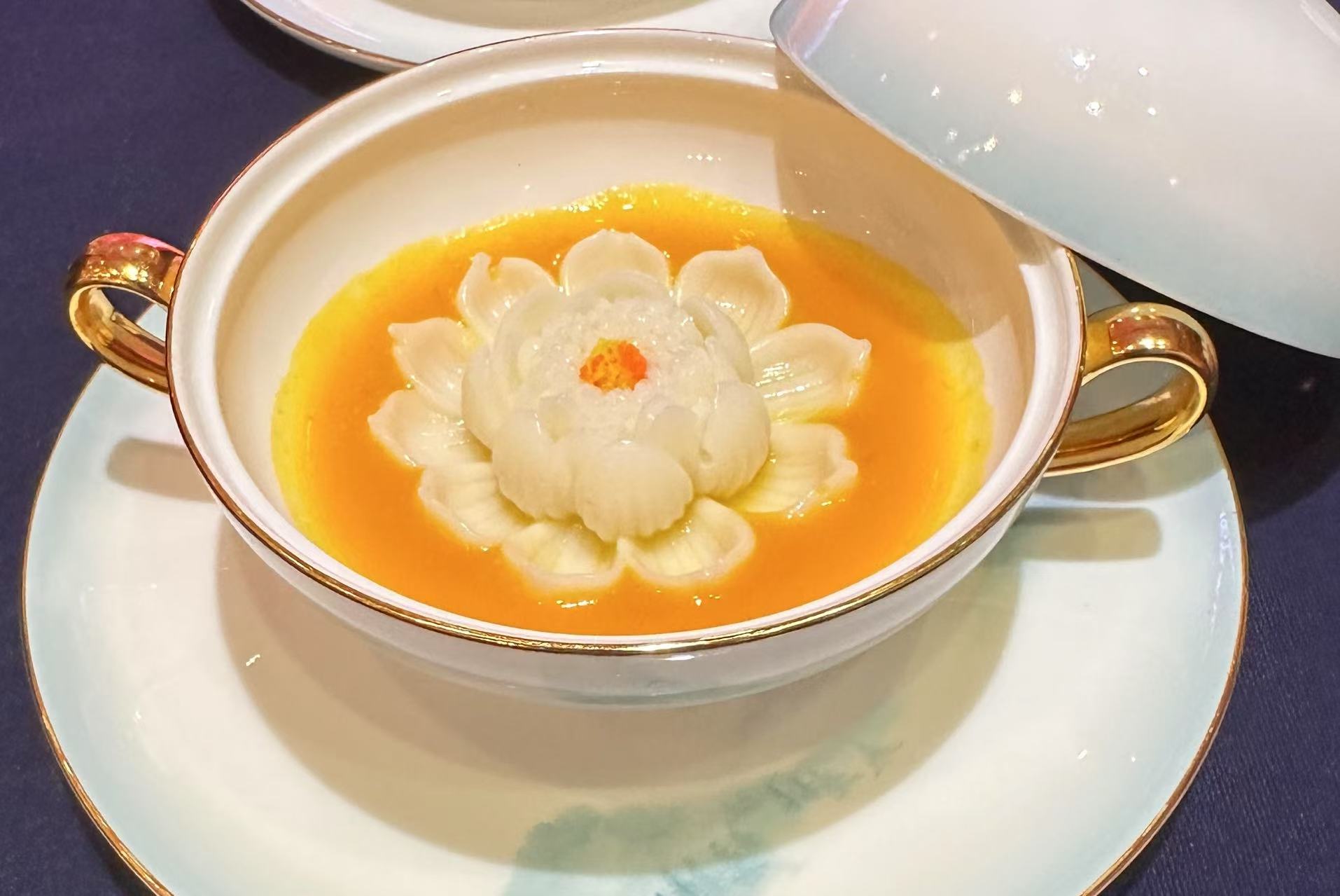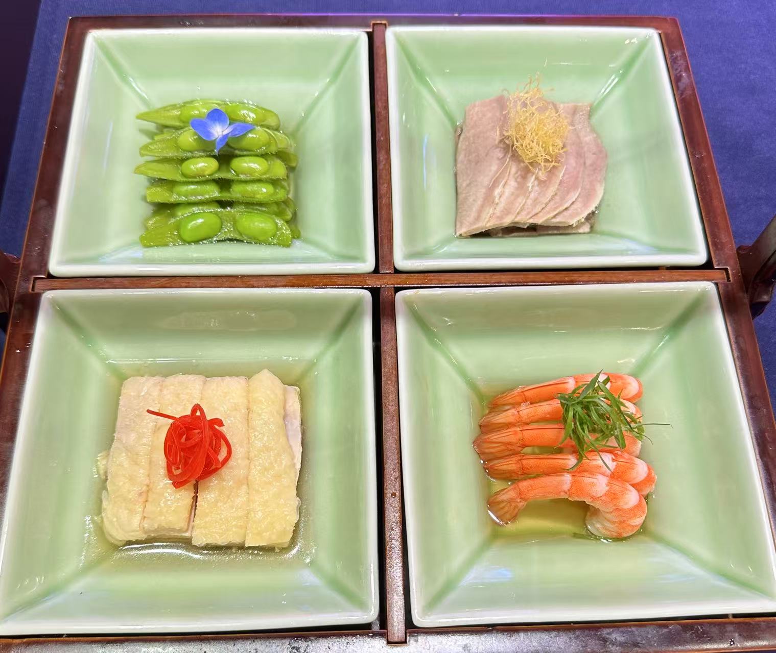酒店特色菜品:碧绿煎鲜贝、碧绿酱香牛肝菌、豉油土猪肉、国际海皇羹、国际酱香牛排、红焖羊腩煲、腊肉花生苗、莲花奶香盏、绍式糟四样、特色目鱼大烤、网红脆皮豆腐等。